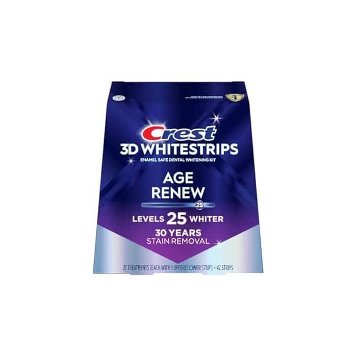 Unleash a radiantly white smile with CREST 3D White Whitestrips Age Renew. They whiten as effectively as a $500 professional laser treatment for a megawatt smile. These whitestrips bring the power of professional whitening to your home, so you can quickly and easily achieve sparkling teeth. Our exclusive FlexFit technology allows the strips to stretch, covering 30% more of your teeth than unstretchable strips. The product name of Supreme Bright has been changed to Age Renew.